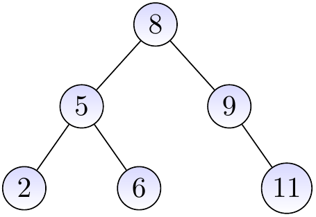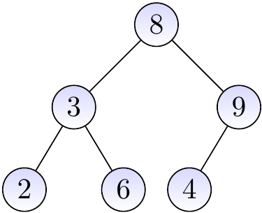 if \(\TNodeI\) is a node in the sub-tree rooted at the left child of \(\TNode\), then \(\TKeyOf{\TNodeI} \le \TKeyOf{\TNode}\)