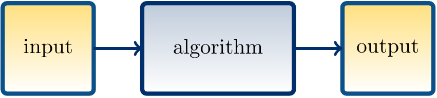 In an abstract view, an algorithm can be seen as a method that transforms some input to output.