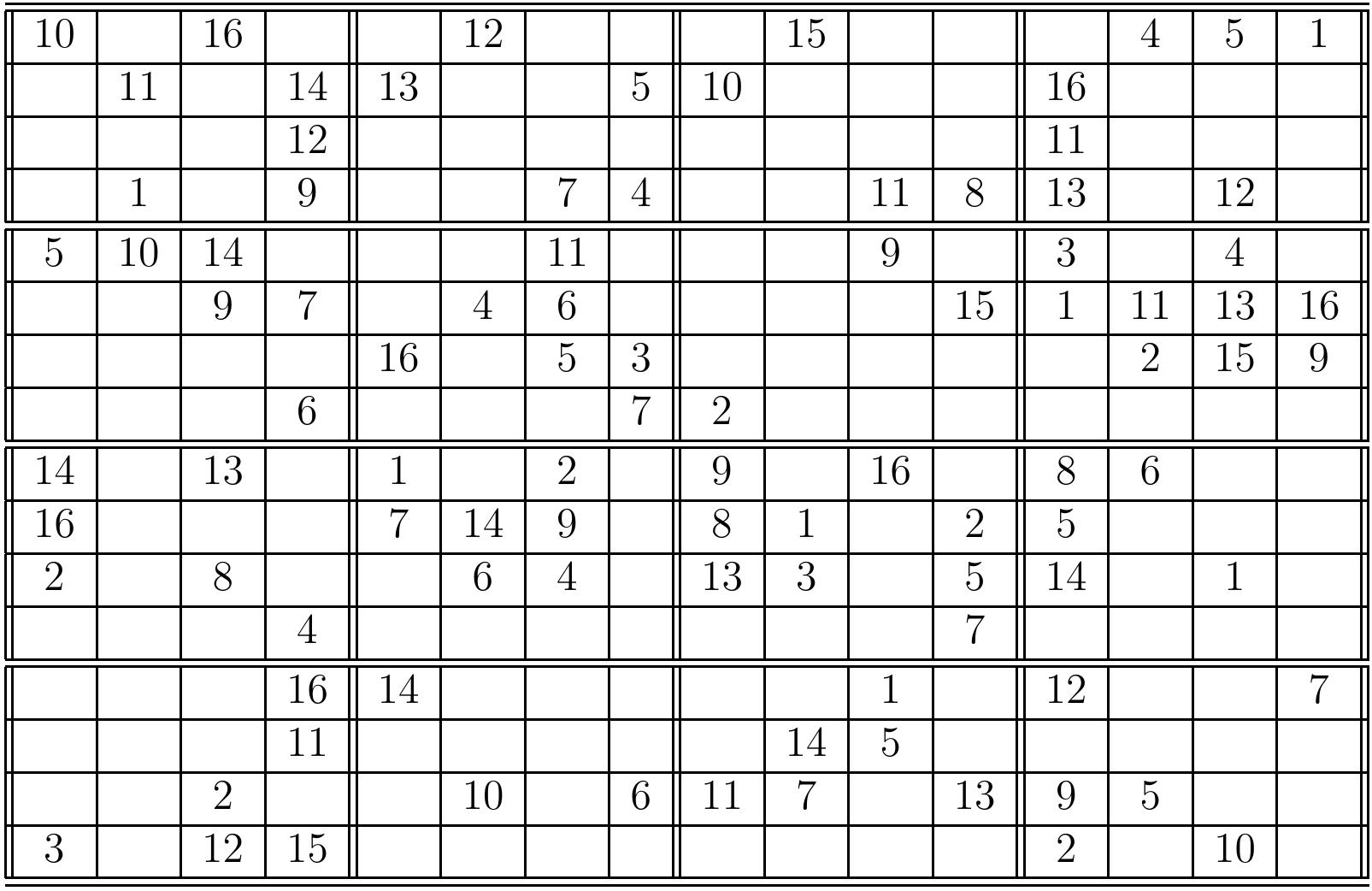 Instance: An \(n \times n\) partially filled Sudoku grid (\(n=k^2\) for some integer \(k \ge 1\)).