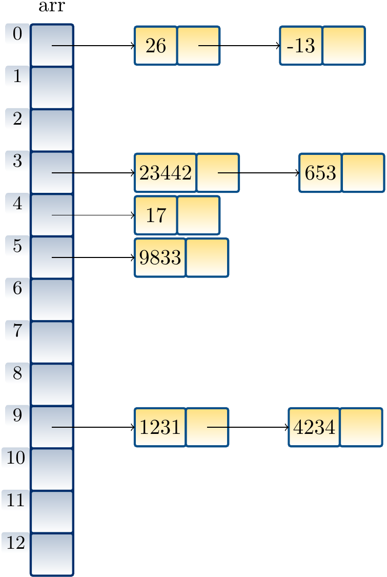 The entries in the linked lists are drawn as