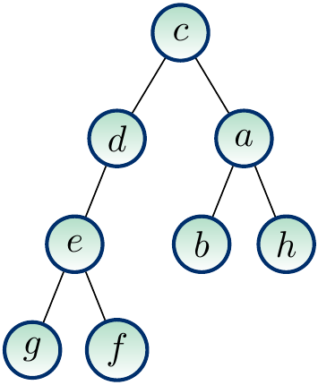 Preorder: \(c,d,e,g,f,a,b,h\)